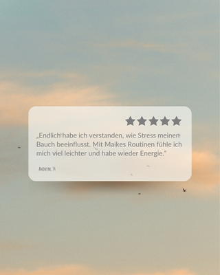 In meinem kostenlosen Guide „Gut Vibes Only – Dein Guide für einen entspannten Darm“ zeige ich dir, wie Stress und Darm zusammenhängen – und wie du mit kleinen Routinen Ruhe in Bauch & Kopf bringst.